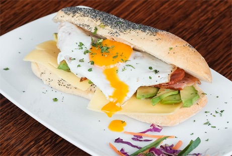 Free range eggs, bacon, avocado, cheese & chilli sauce